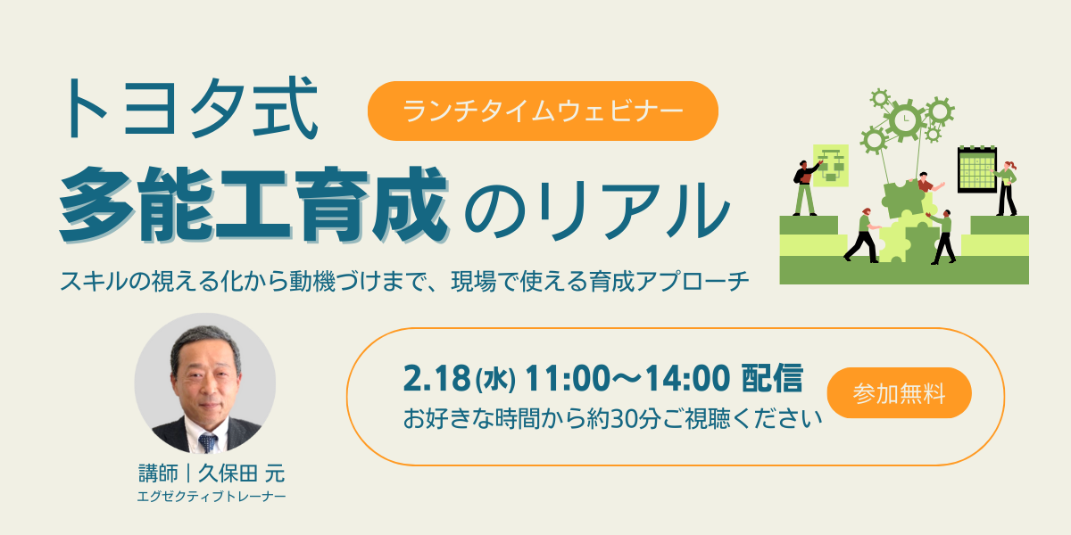 | テーマ | トヨタ式 多能工育成のリアル ~スキルの視える化から動機づけまで、現場で使える育成アプローチ~ |